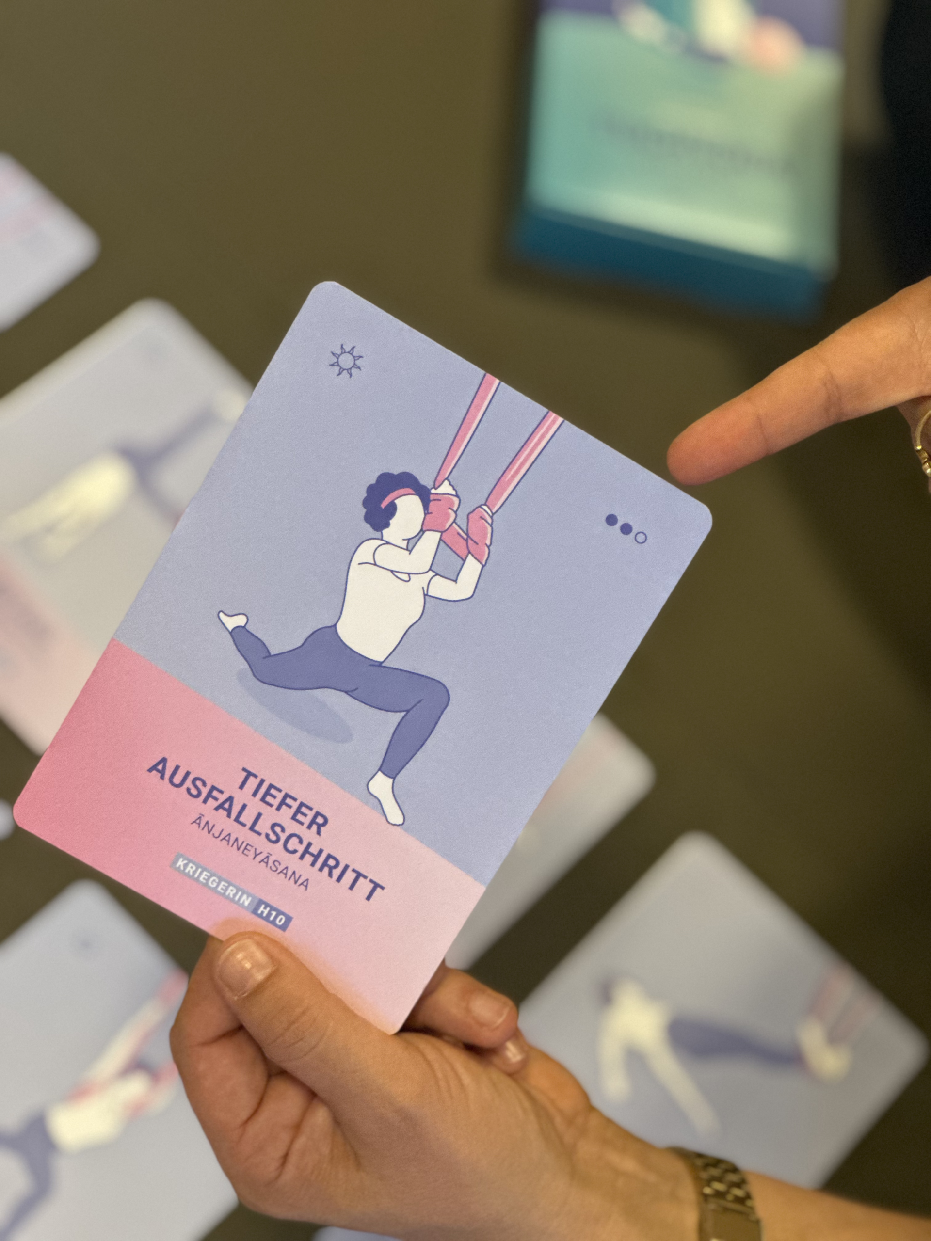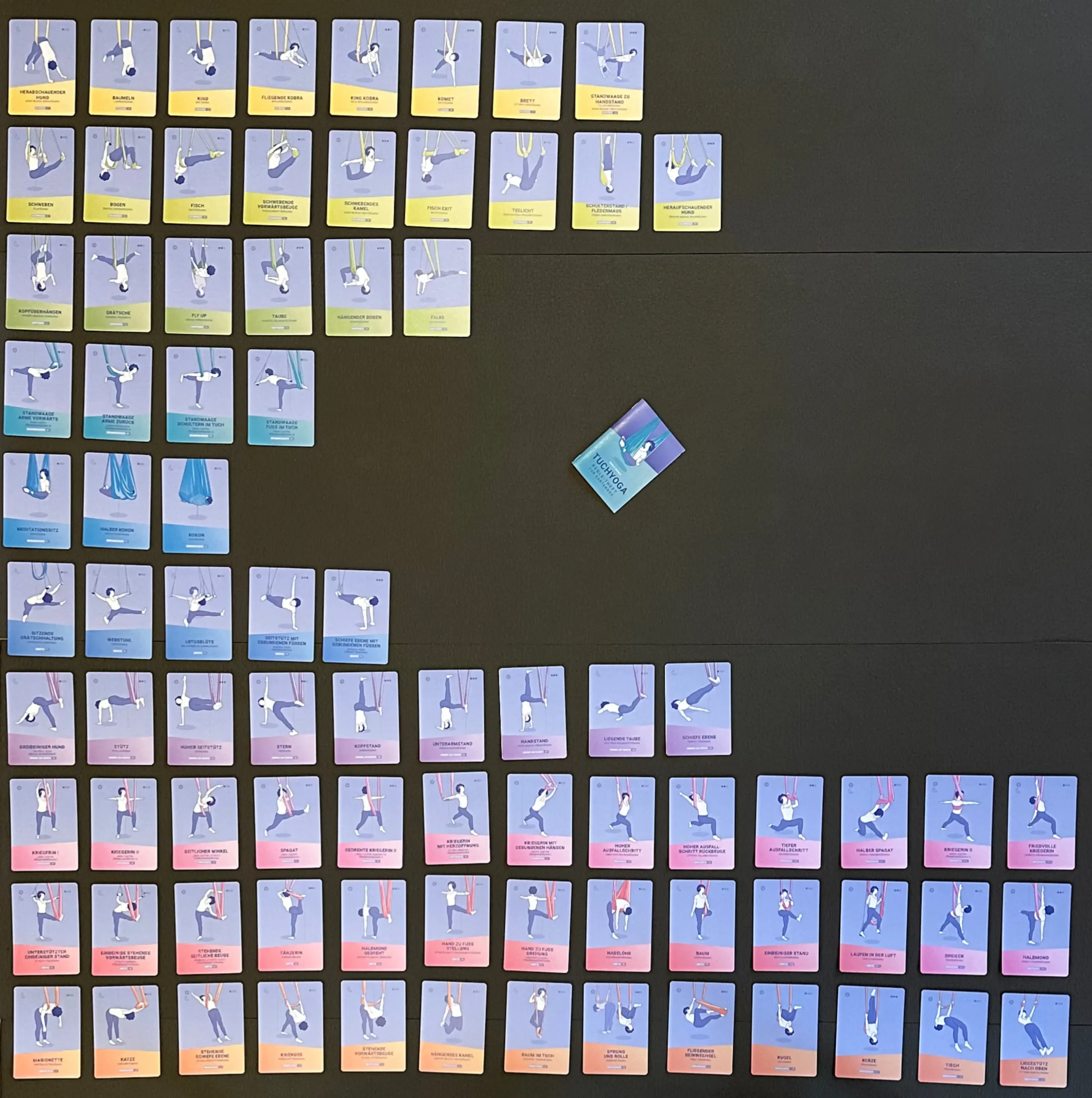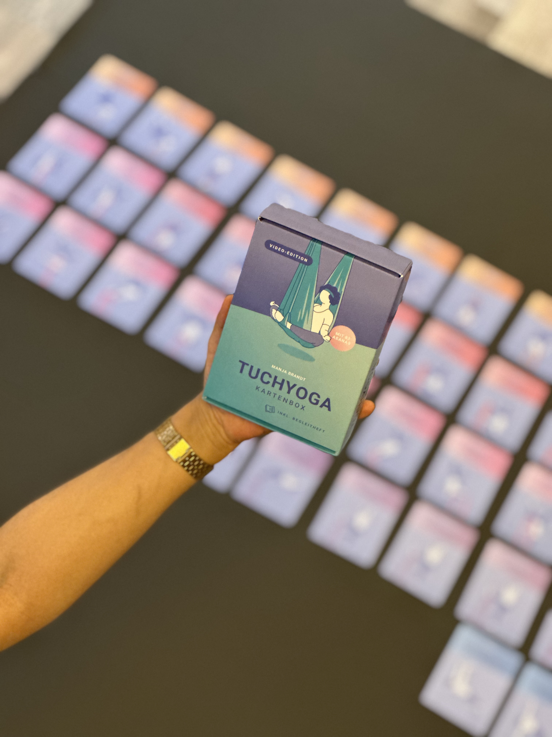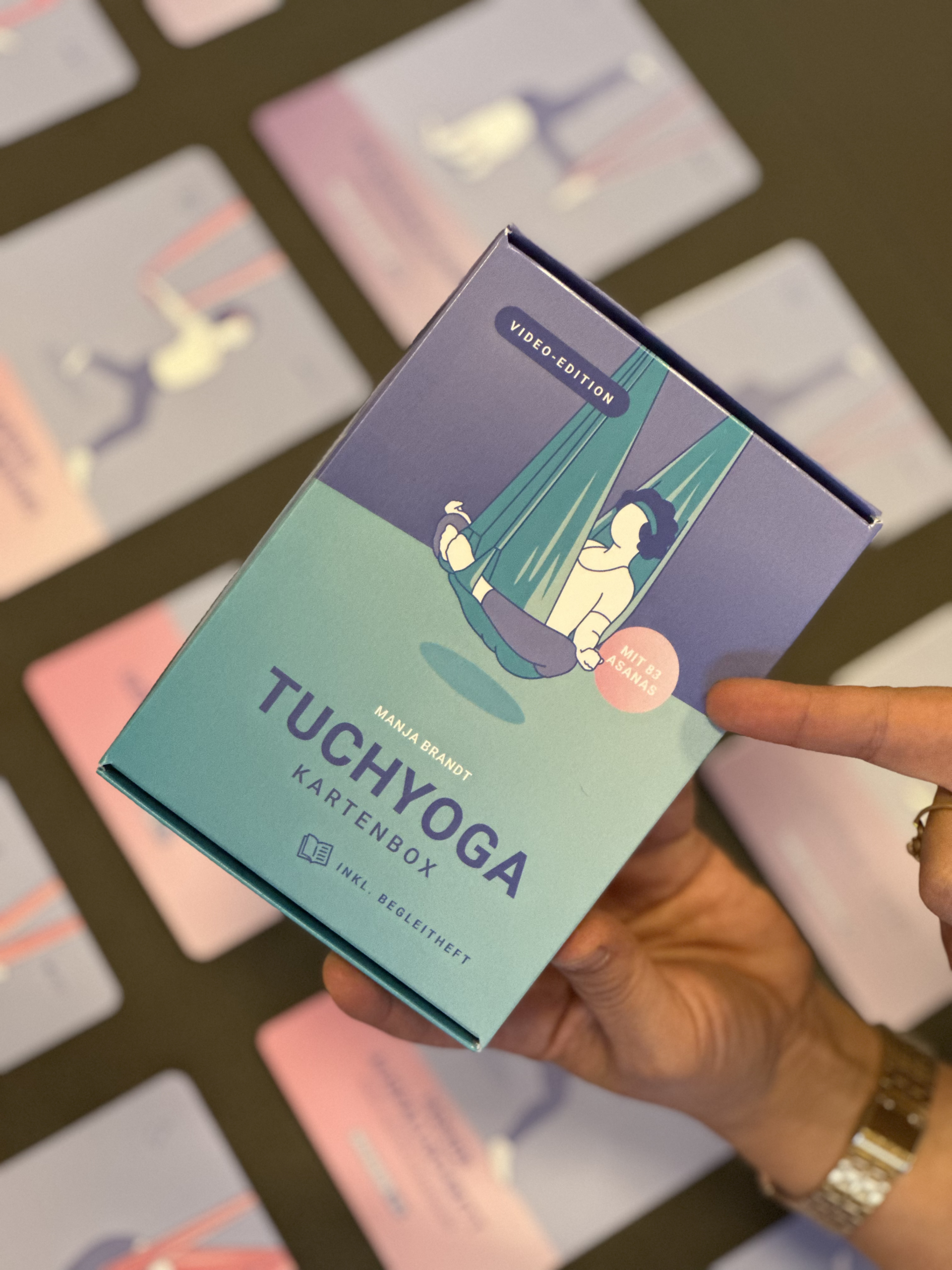 Das Tuchyoga ist eine besondere Leidenschaft von mir, daher ist das erste (bisher noch einzige) Produkt diese tolle Kartenbox rund um Tuchyoga. Sie ist sowohl für Lehrende als auch für Praktizierende gedacht.