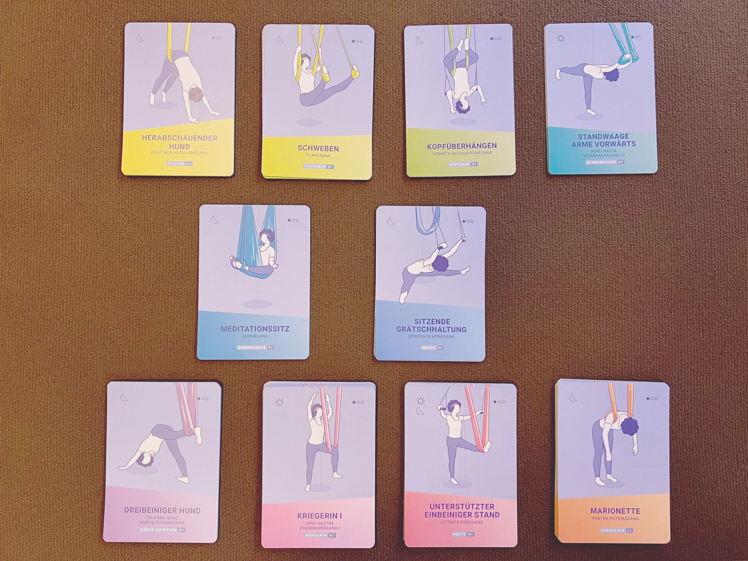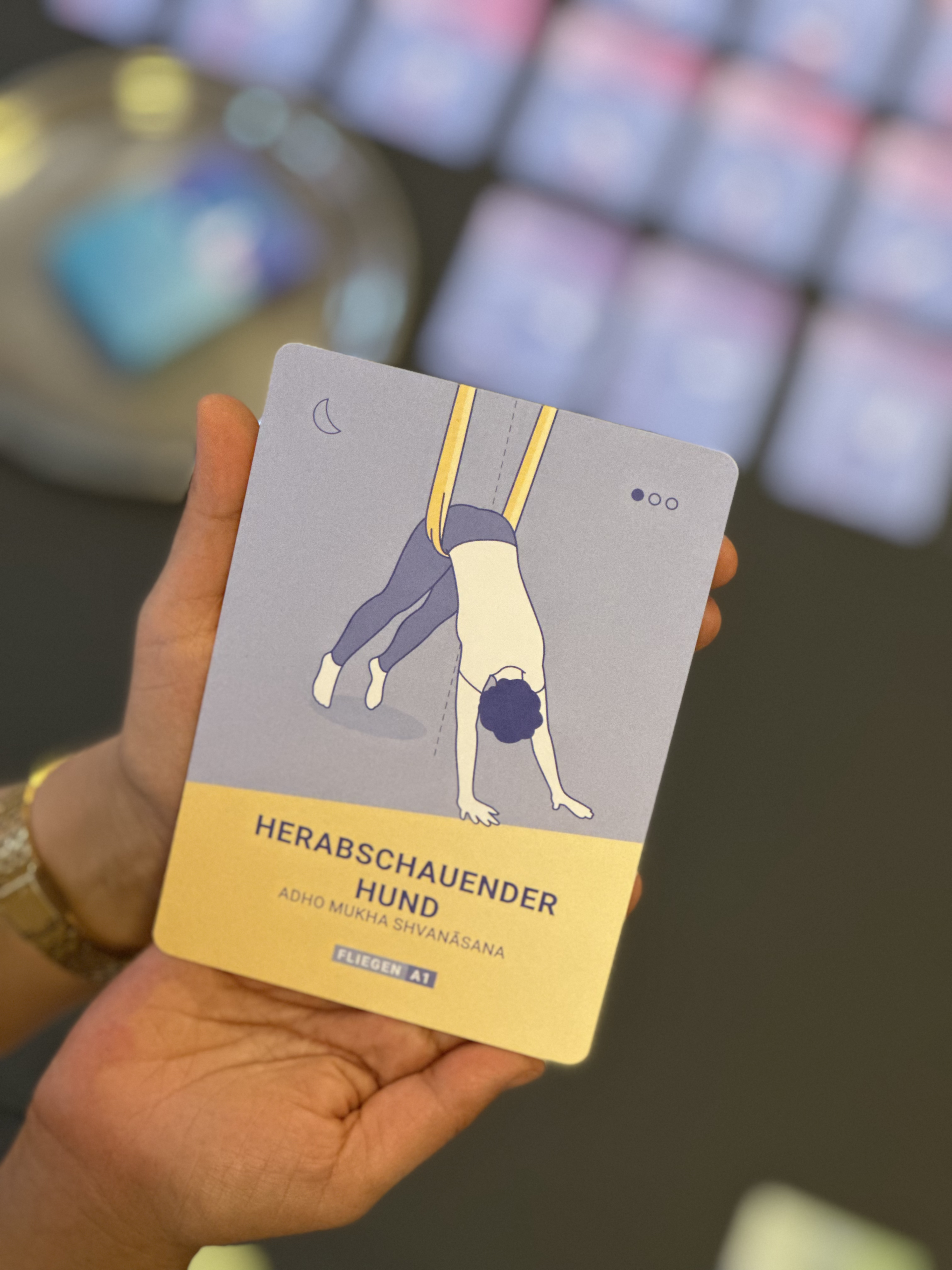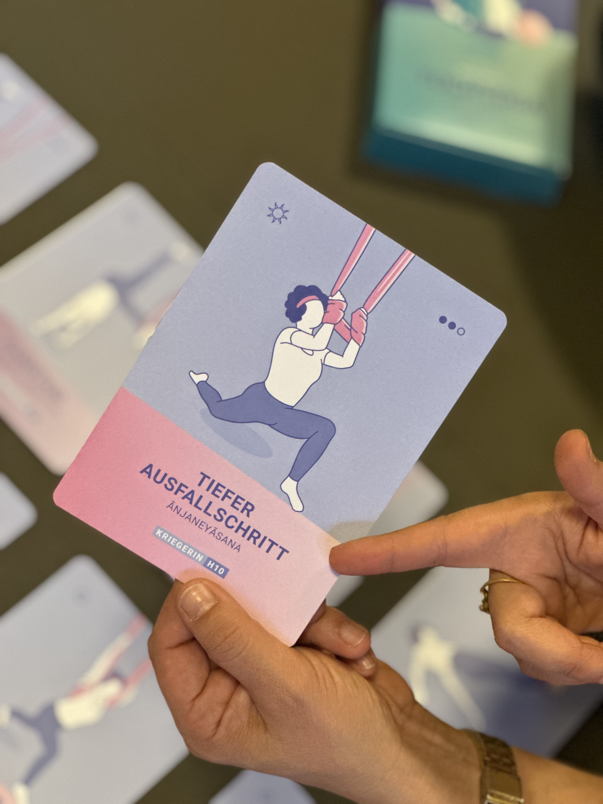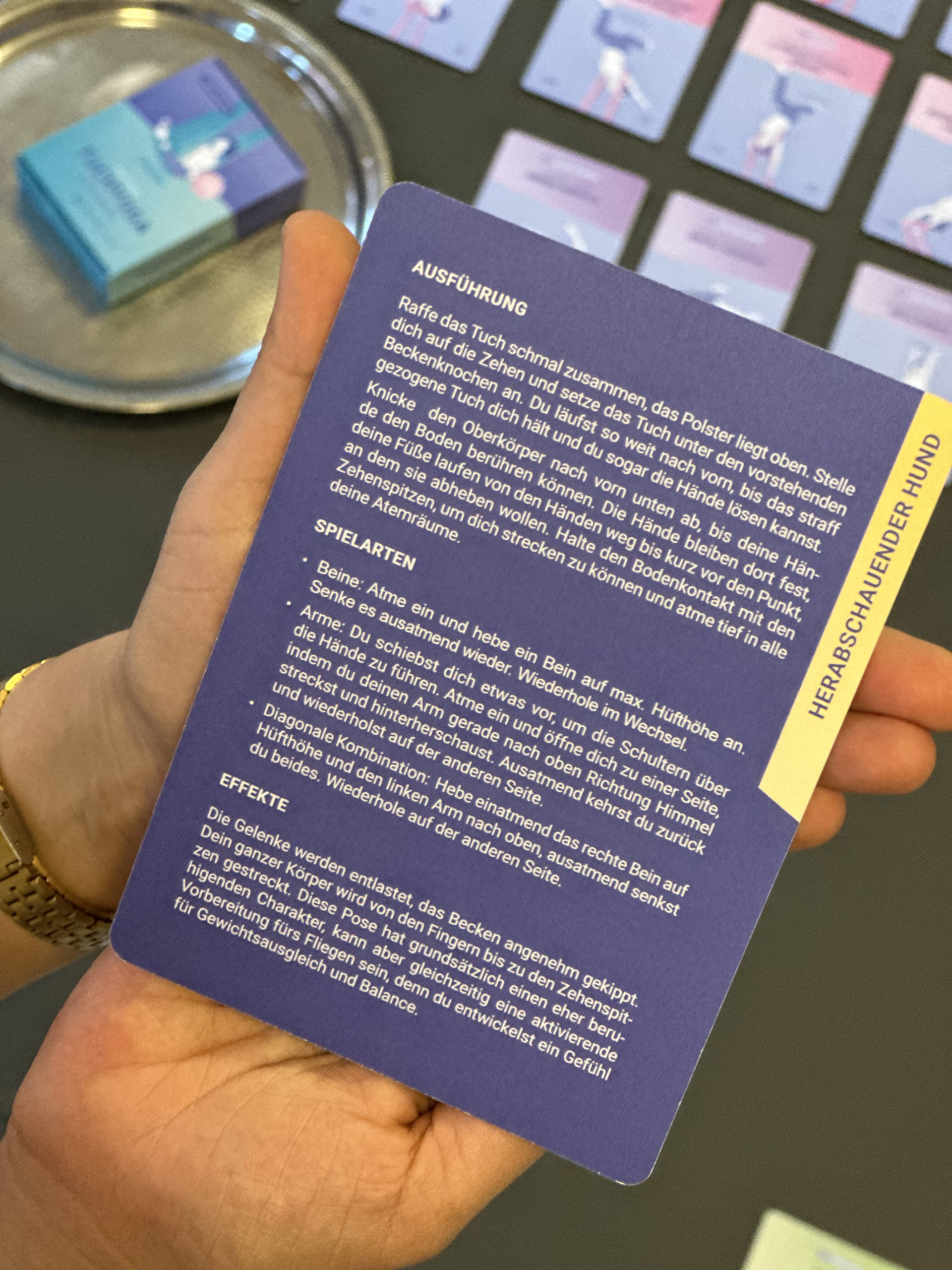 Das Tuchyoga ist eine besondere Leidenschaft von mir, daher ist das erste (bisher noch einzige) Produkt diese tolle Kartenbox rund um Tuchyoga. Sie ist sowohl für Lehrende als auch für Praktizierende gedacht.